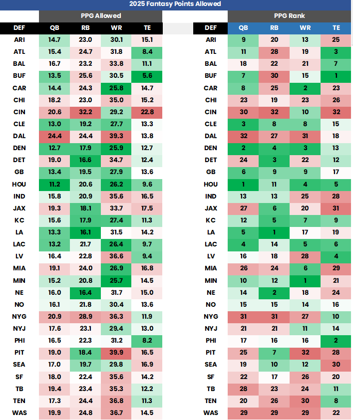 DK Points Allowed by Position (Week 13)