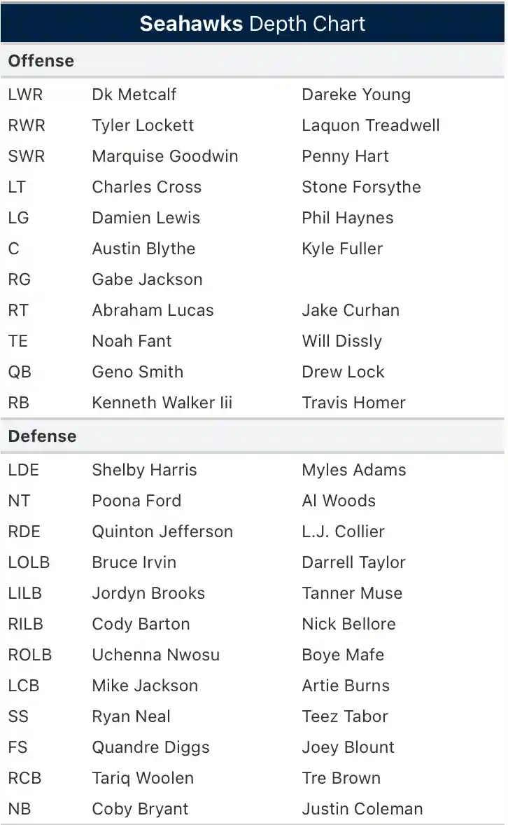- They don’t have reliable WR Tyler Lockett this week and that is going to hurt their chances even more. It may take a half to adjust to his loss on the field as well as the freezing cold temperatures that they are not used to.