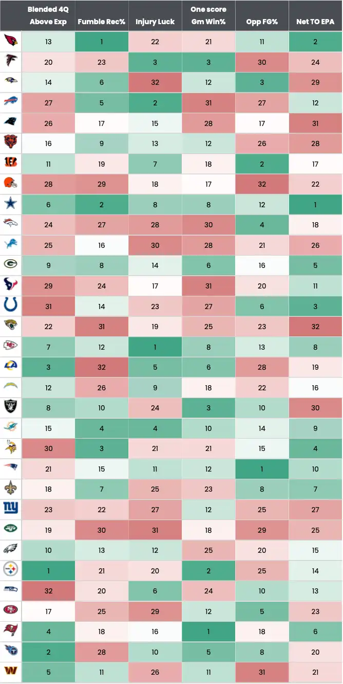 Blended 4Q -> 1 = overperformed, 32 = underperformed