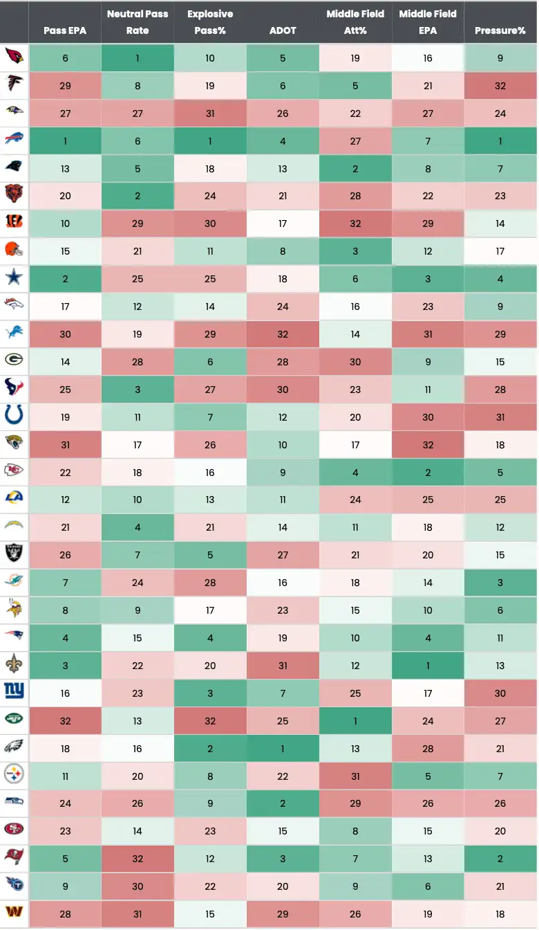- Seattle’s defense has been bad for most of this season but it is really been an issue of late. In the last five games, they’ve allowed three separate teams – LV, TB and Carolina, to post their single best EPA offensive game of the season.